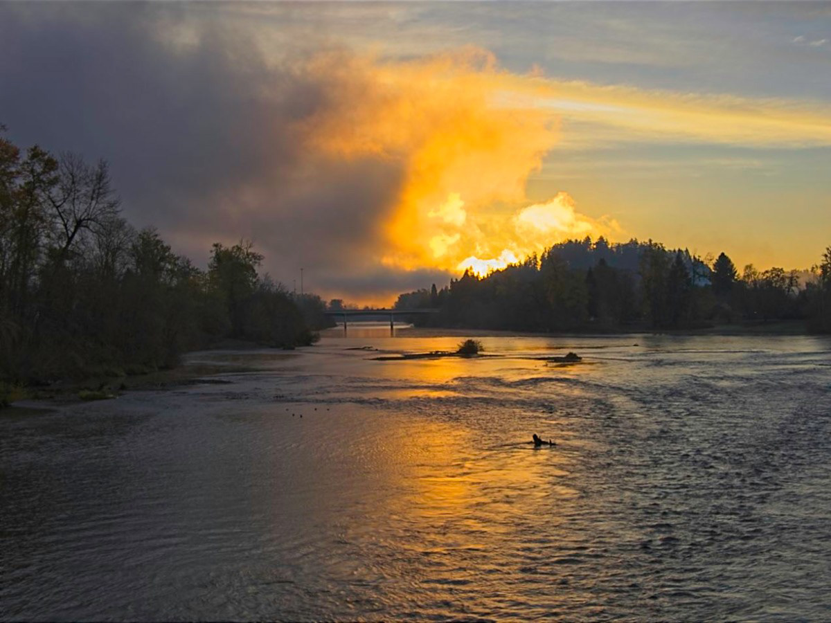 Day after super blue moon reflected in Delta Ponds in Eugene, OR