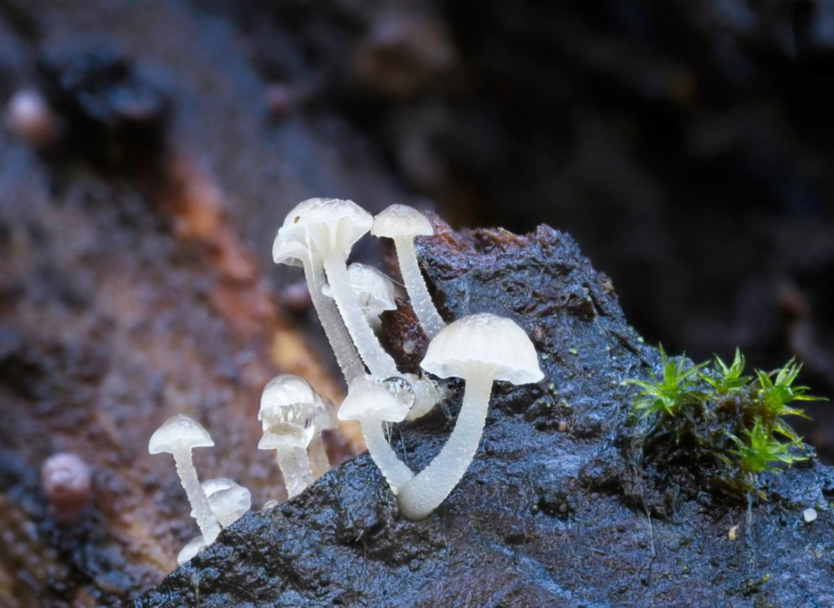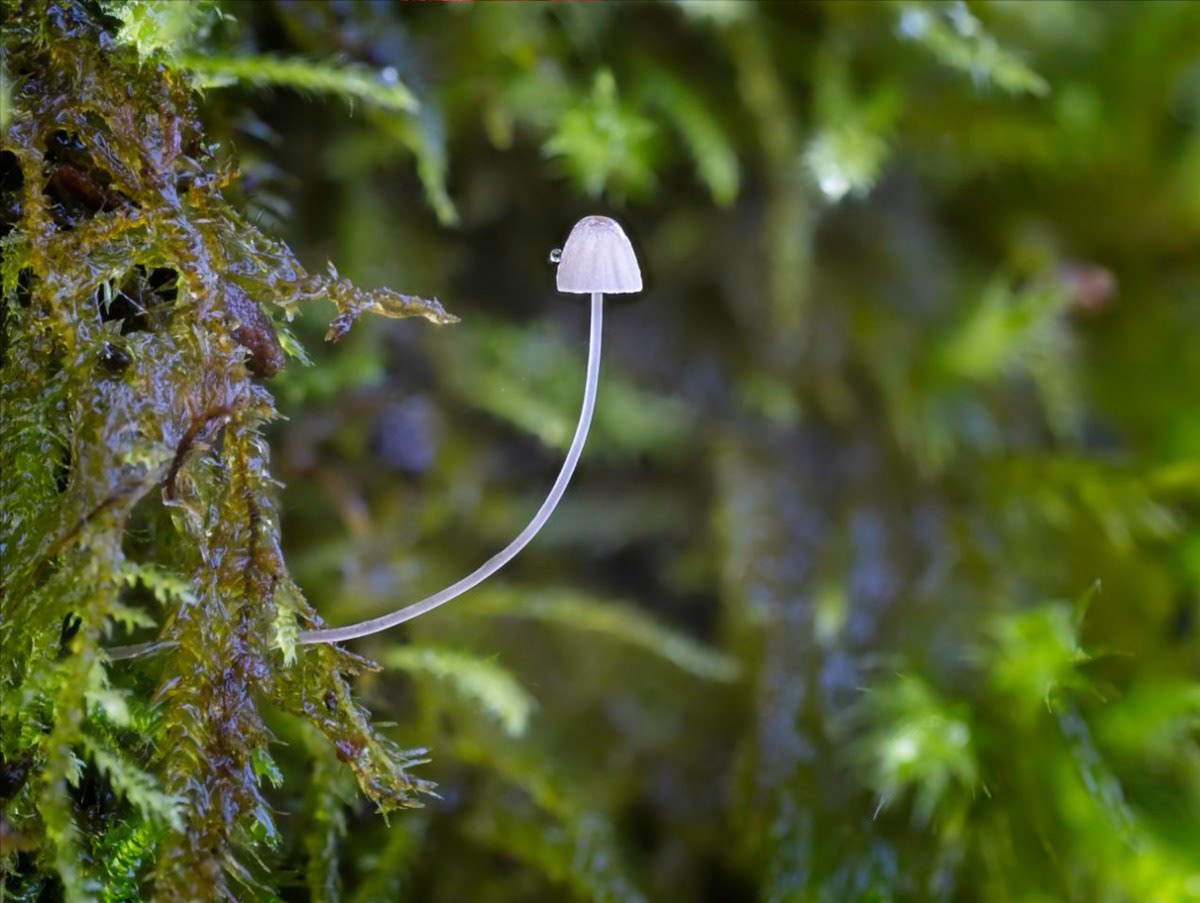 Slime mold on a moss. Feeds on bacteria not the moss.
